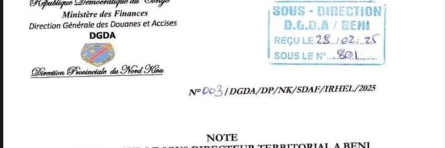La nouvelle politique de la DGDA ( Douane congolaise) sur les territoires occupés par le M23/AFC menace de démanteler la souveraineté nationale et d’enflammer la région. Beni, République Démocratique du Congo – 27 février 2025 – Une décision choc secoue la RDC. La Direction Générale des Douanes et Accises (DGDA) a largué une bombe administrative… Lire la suite DIRECTIVE DOUANIERE EXPLOSIVE : LA RDC TRAITE LES ZONES REBELLES COMME UN ÉTAT ÉTRANGER BALKANISE